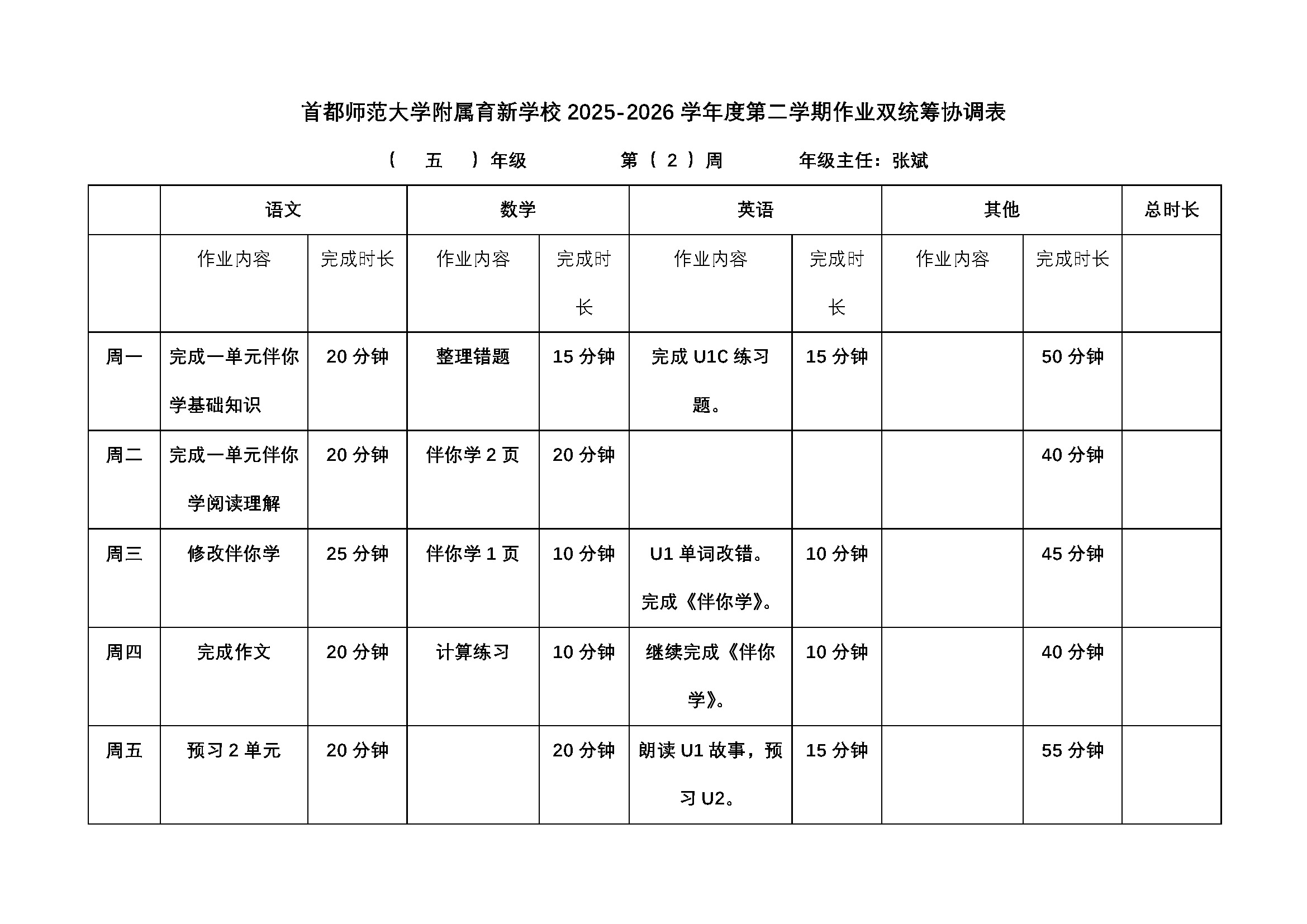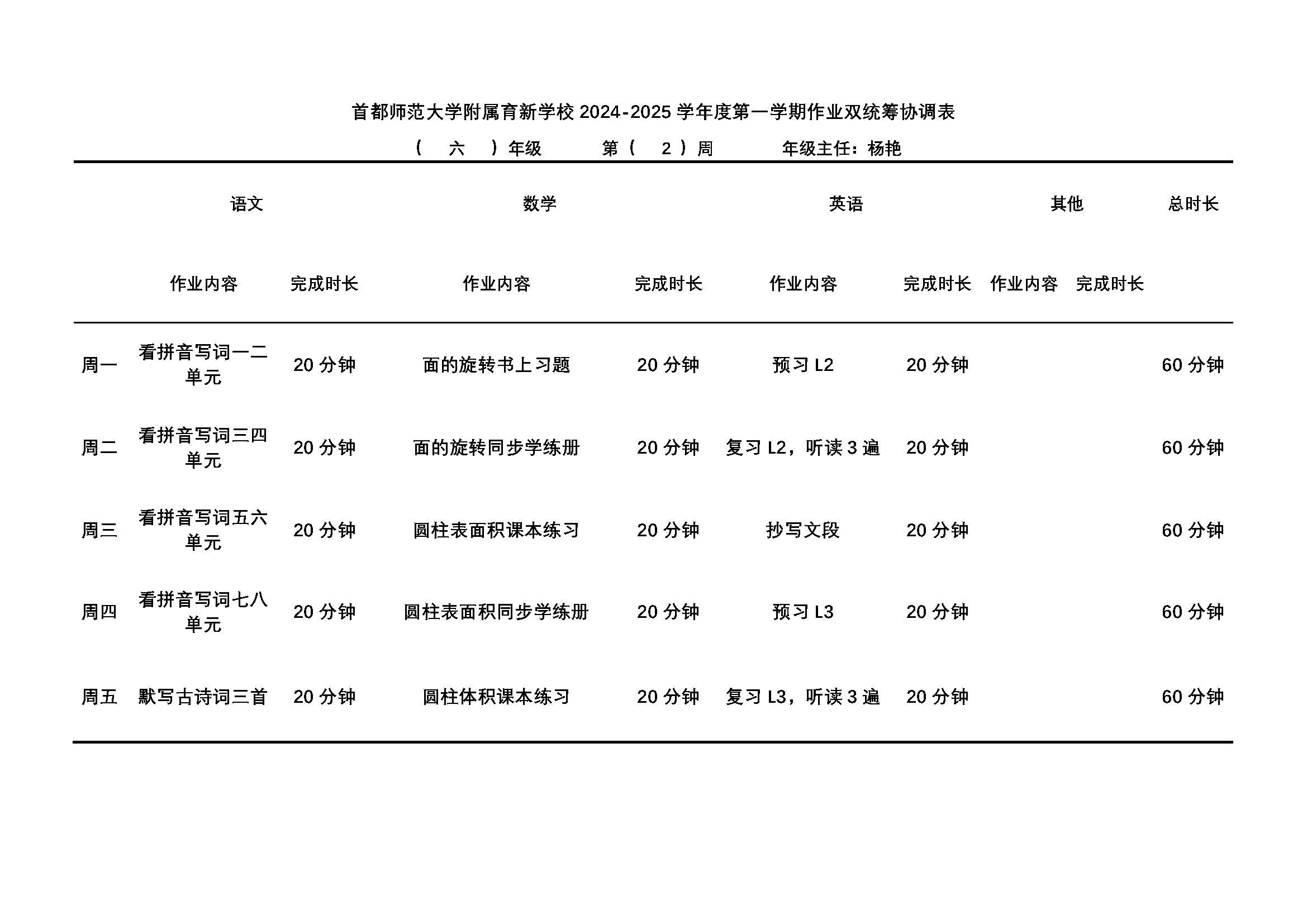 【作业公示】三-六年级年级第2周作业